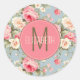 Shabby Chic Pink and Blue Cottage Roses Monogram Classic Round Sticker