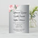 Shabby-Chic Pink Roses on Silver Wedding Rehearsal Invitation