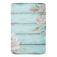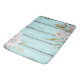 Shabby country farmhouse chic bath mat with rustic teal blue wood and rose background. This shabby chic bath mat can be personalised with the text of your choice.