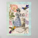 Elegant 1835 illustration from the French fashion magazine "Petit Courrier des Dames" forms the centerpiece of this collage. On the sides are antique engravings of hummingbirds, a cherub, a pink wild rose, lacy undergarments, etc. Wonderful for a girls bedroom, etc.