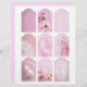 Lovely pale pink vintage style and shabby tags for embellishing your scrapbooks, junk journals and collage project. This sheet of 9 small tags is designed using faint lace patterns, music, text, pretty pink floral arrangements and beautiful vintage photographs, all pink toned.