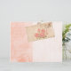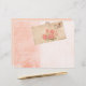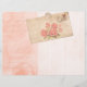 Lovely pale, peach pink paper with faded stripes, vintage text and shabby postcard.