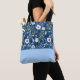 This blue, white, and yellow flowers botanical illustration is perfect for an all-over print tote bag. The bottom third (aprox.) is a coordinating solid with a thin stripe. Tote bags are a fun seasonal aesthetic accessory. Great stocking stuffer, too! AI assisted graphic purchased with commercial use. Artwork: DreamCafeArt