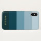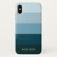 Personalise this phone case for yourself or someone special! Wide stripes in a calming shades of blue colour palette with gold name at the bottom.