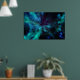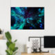 Shades of Turquoise and Sapphire Blue Stars, Planet and Nebula in Space.