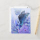 A fantasy painting in shades of blue, featuring dendrobium and vanda orchids, with an elegant fairy with butterfly wings looking away into the blue mist. This postcard is fully customisable with option to add your own text. ©Aruarian Dancer / MiyabiLine