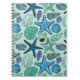 Shades Of Blue Seashells And Starfish Pattern Spiral Notebook