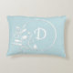 Shades of Blue Striped Monogram Pattern Pillow - small monogram in corner of sriped side and large on plane ble side.