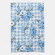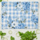 SHADES OF BLUE & WHITE PLAID PATTERN & FLOWERS TEA TOWEL
