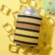 Can Cooler Koozie Sleeve printed with Shades Of Golden Yellow Stripes On Black artwork design by TheFabricSeal at Zazzle.com #ZazzleMade TheFabricSeal©️Original.