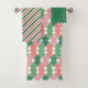 SHADES OF GREEN & CORAL PATTERNS & STRIPES BATH TOWEL SET