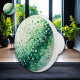 A soft, dreamy abstract watercolor artwork of tiny chequerboard squares in an array of green hues, with light minty tones blending into deeper emerald.