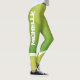 These modern workout leggings feature trendy shades of green with customisable name on both sides in white all caps font