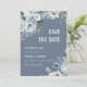 Elegant floral winter wedding save the date card features elegant grey and icy blue watercolor flower bouquet frosty-hued greenery. Please contact me for any help in customisation or if you need any other product with this design.