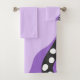 Bring an artsy touch to your bathroom with this shades of purple modern abstract art bath towel set colored with light and dark purple, black lines and white dots.