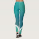 These modern workout leggings feature trendy shades of blue and bright turquoise with customisable name on both sides in white all caps font.