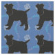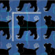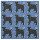 This fun, cute black shadow silhouette style Fox Terrier stands against a blue background with paw prints and tracks of grey, blue and pink. Design by Diane Blackman. The same design is available with other fun dog images.