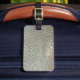 Stingray or sharkskin in its untanned form has been coloured for use on furniture or ornaments since the days of the Shoguns when it was used in Japan on the handles of swords. With its scratchy, rough feel it has also been used as an abrasive, much like sand paper. Shagreen was used to its full beautiful effect in the heyday of the Art Deco movement when it was used on bureaux, boxes, tables, chairs—even cigarette cases and make-up cases. Expensive and difficult to harvest given its origins, shagreen is a much-prized skin denoting elegance and chic style. It is often seen in its natural colourings of beige, brown and grey.