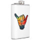 Well made flask, a little better than I had expected. Flask came in clear plastic box which gave it a nice presentation when I took it out of the zazzle packaging. Image is not printed on flask but on sticker. Don't know how this will hold up I haven't used it yet. This would make a Great gift! I plan to purchase more for friends! Cheers. I thought a little brighter than computer. Very crisp, writing wasn't