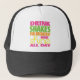 I totally love my hats. I love the designs,how the trucker hat fits, the product is amazing. And I can't stop buying them. Very well done, centered well.