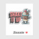 Cute cartoon chocolate shake mascot with the text, "shake it up." Chocolate milkshake with whipped cream and a cherry on top cartoon.