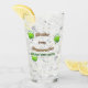 St. Patrick's Day glass that says Shake Your Shamrocks till the beer spills. The text is full of beer and the shamrocks are full of green beer, as is tradition.