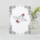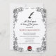 This lovely wedding invitation features a simple white background with a border of black illustrated roses, renaissance style, and a line from Shakespeare: Now join hands, and with your hands, your hearts. Two red roses are separate on the front and joined on the back, bringing a splash of colour to this simple, clean invitation. Let the Bard invite your friends and family to witness your nuptials.