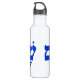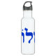 Shalom, Hebrew for "peace", in blue on a white water bottle.