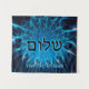 Dark text reading "Shalom" (שלום - Hebrew "peace") superimposed on a lighter blue fractal image. Add your own additional text.