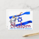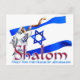 The Israeli Flag with the Star of David forms the backdrop for this inspiring design featuring a man in a prayer shawl blowing a shofar. Below it, is the Hebrew word for Peace--SHALOM-- and the timely admonition to "Pray for the peace of Jerusalem."