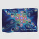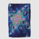 A multicolored (pink, green, blue, yellow), looping fractal image on a dark blue background. An interpretation of how the night sky may appear to a Siberian shaman while in a trance communicating with the spirits. Add your own text.