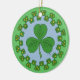 According to tradition, Saint Patrick used the three-leaf clover to illustrate the Christian Trinity. Although the authenticity of this tradition is in question, the shamrock has become a symbol of Ireland. This design combines the shamrock with a circle of Celtic-style knotwork.