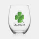 Shamrock Clover Design Stemless Wine Glass with customisable text.