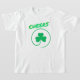 Green Shamrock Clover Leaf, Lucky St Patrick's Day Cheers, Ireland Irish Pride T-Shirt. (The text colour is slightly uneven, that is partof the design, not a print error.)