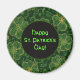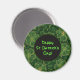 Round magnet with an image of fantastic shamrocks trimmed in gold adrift on dark green. Black circle has a green border and a customisable sentiment. See the entire St. Patrick's Day Magnet collection in the PARTY FAVORS section.