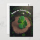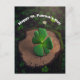 A shamrock grows on a tree stump in the shamrock forest for St. Patrick's Day.