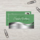 Shamrock Green Wavy Silver Decor Initials Photo Business Card