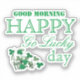 Whimsical baby duck with green St. Paddy Scarf wishes plenty of luck for St. Patrick's Day holiday. Green "Happy Go Lucky" holiday message, featuring duckling bringing you a clover and card full of lucky shamrocks.
