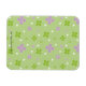 Seamless floral pattern, lucky green and purple shamrocks on green background