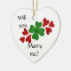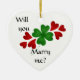 A pretty marriage proposal heart ornament for St. Patrick's Day, or any day with a green four leaf clover and red hearts on it.