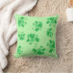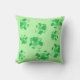 A shamrock is made from a collage of shamrocks, in shades of green, and is printed in various positions on custom pillows. There are multiple shamrocks on one side, and one of these shamrocks on the reverse side. The background colour of light green can be customised.
