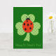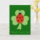 Shamrock or clover with Polka dots and ladybug St. Paddy's Day greeting card.