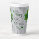 Enjoy your morning coffee or latte with a festive Shamrock St. Patrick's Day Latte Mug. Latte mug design features colourful four leaf clovers with the greeting "Happy St. Patrick's Day" against a grey marble background. Additional items available with this design.