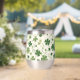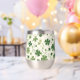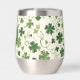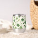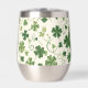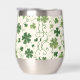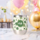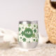 This wine tumbler glass has a fun Irish pattern of varying green shamrocks and swirls on an off-white background. At the centre is a round matching green circle banner with your three letter monogram. Proudly show your Irish side!