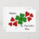 A post card for St. Patrick's Day or any day with a green four leaf clover and red hearts. This could make a cute little welcoming sign if framed, next to the front door.