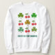 SHAMROCKS AND CHERRIES Coquette St Patricks Day sweatshirt with CUSTOMIZABLE TEXT. Design shows a grid of shamrocks and cherries in a 3x3 format. The shamrocks are made up of Irish flag colours. Underneath the CUSTOMIZABLE TEXT reads CHERRY-ISH EVERY SHAMROCK, which you can PERSONALIZE by adding your name, other text or deleting. Also in black.