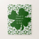 Give friends and family a unique St. Patrick’s Day greeting with this 11” x 14” jigsaw puzzle with an image of shamrocks and top hats on white, a dark green four-leaf clover, and an optional Irish blessing. See the entire St. Patrick’s Day Puzzle collection under the HOME category in the HOLIDAYS section.