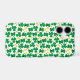 This iphone case offers a fun and festive St. Patrick's Day pattern. The leprechaun's hat, green shamrocks and gold coins appear on a white background.
