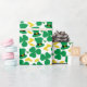 This gift wrapping paper features a fun and festive St. Patrick's Day pattern. The leprechaun's hat, green shamrocks and gold coins appear on a white background.