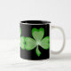 A modern design featuring three shining, sparkling, green shamrocks on a black background. Mug with a customisable design for you to personalise with your own background colour, text, pictures and ideas. Available in all style options. Created using original photographs and digital techniques by Jess Perry.